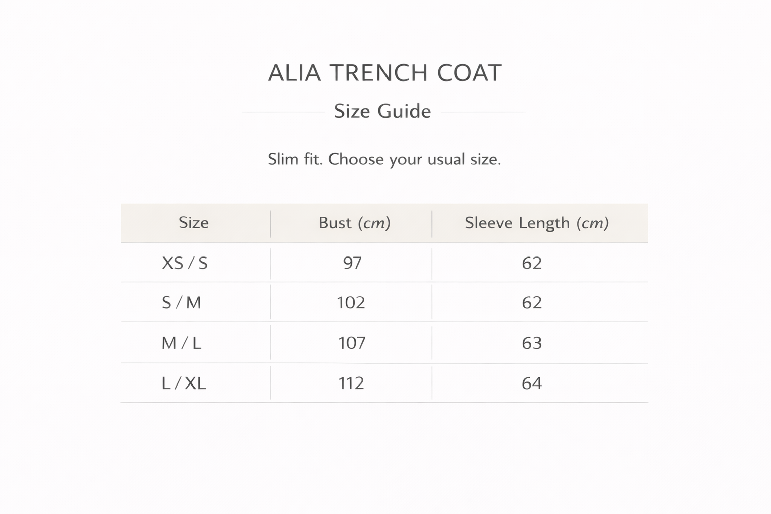 Kabát Alia je dostupný ve třech délkách, aby vyhovoval různým proporcím i stylovým preferencím.