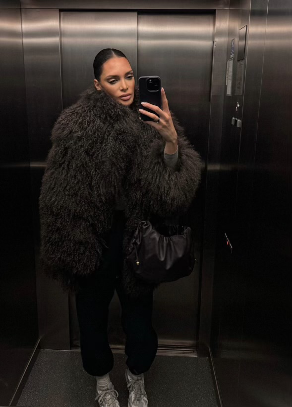 The distinctive texture of Mongolian lamb fur adds airy volume while remaining sophisticated and effortlessly wearable.