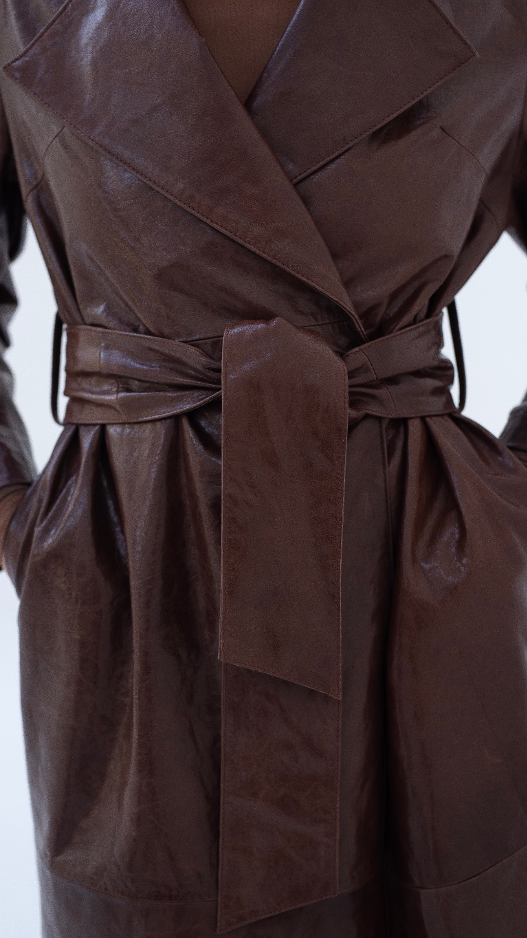 MEDA – OILED LAMBSKIN LEATHER TRENCH COAT