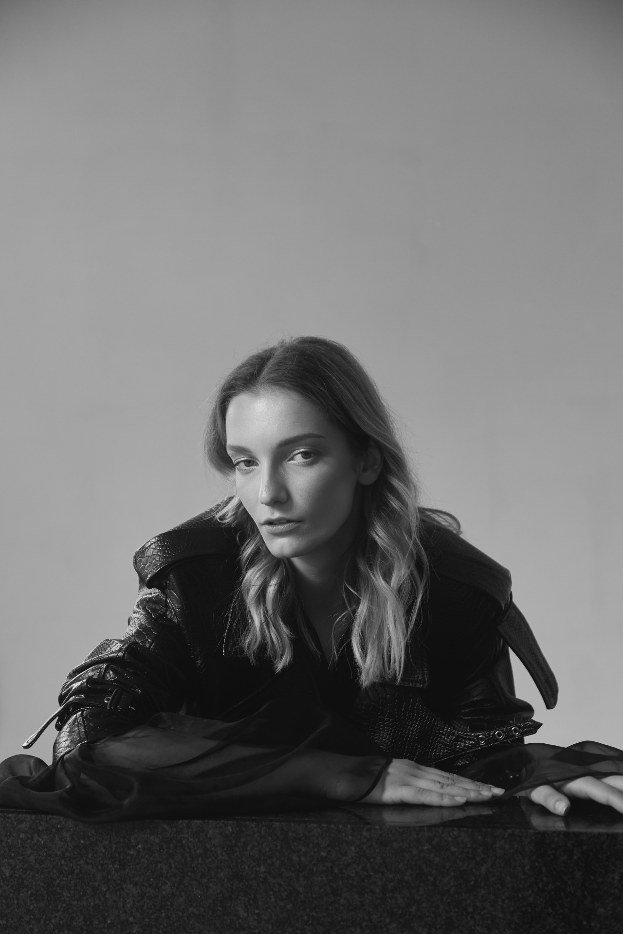 The double-breasted fastening paired with a self-tie belt at the waist brings balance and structure, while padded shoulders add a dramatic and confident presence. Veronica is a timeless coat designed to stand out season after season.