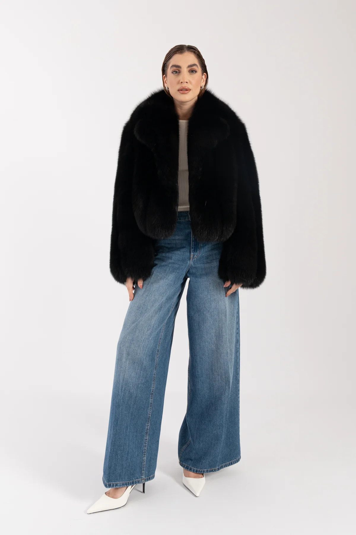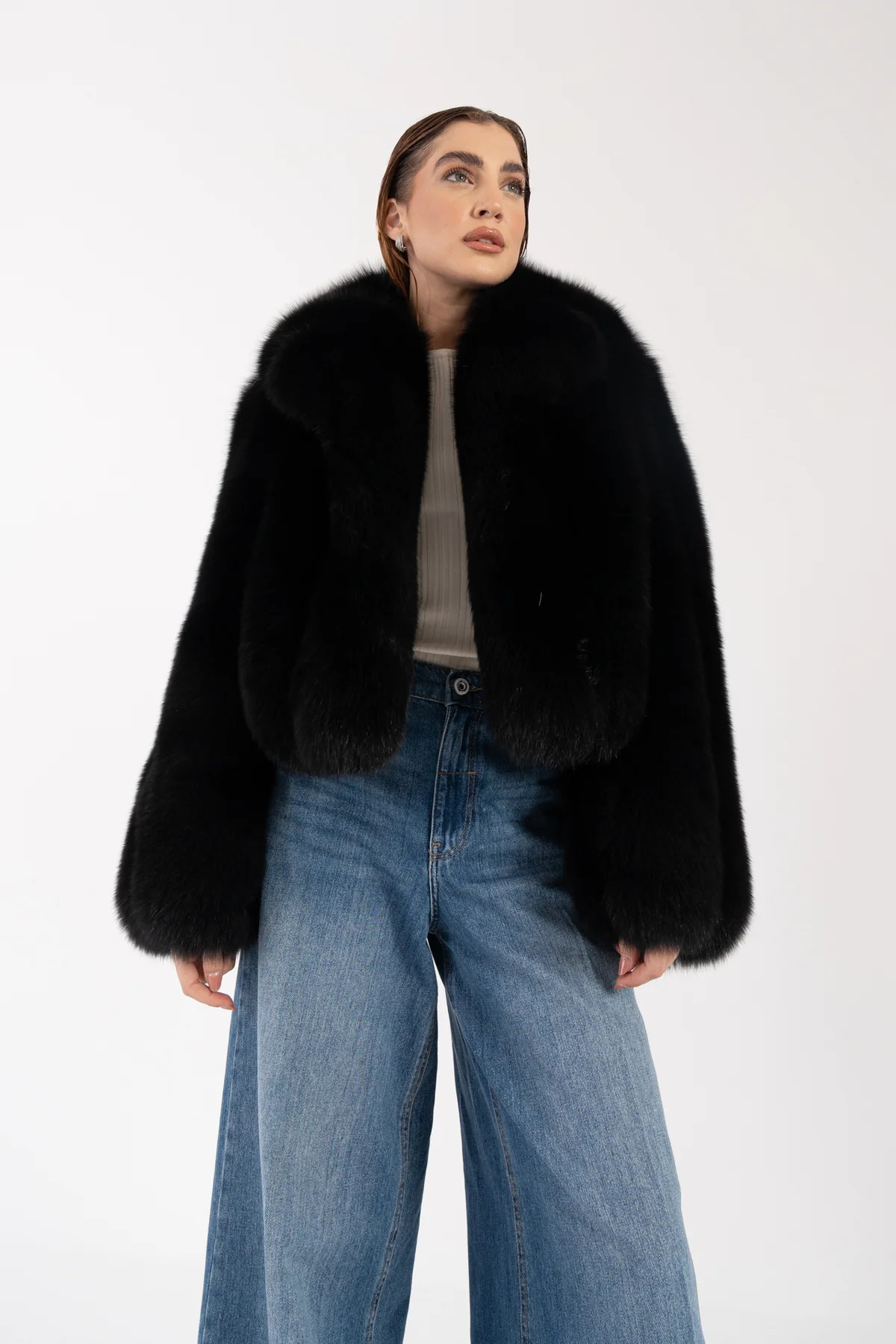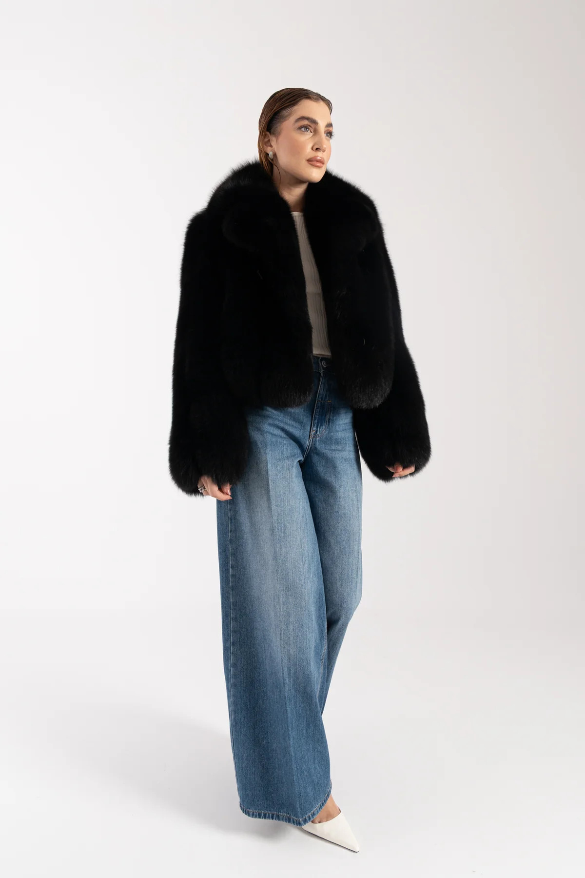 Model Elizabeth představuje elegantní hladký kabát z exkluzivní finské lišky z certifikovaného chovu Saga, kterou pro vás tónujeme do vybraného odstínu. Luxusní srst s jemným leskem a bohatým objemem podtrhuje nadčasový charakter tohoto modelu.