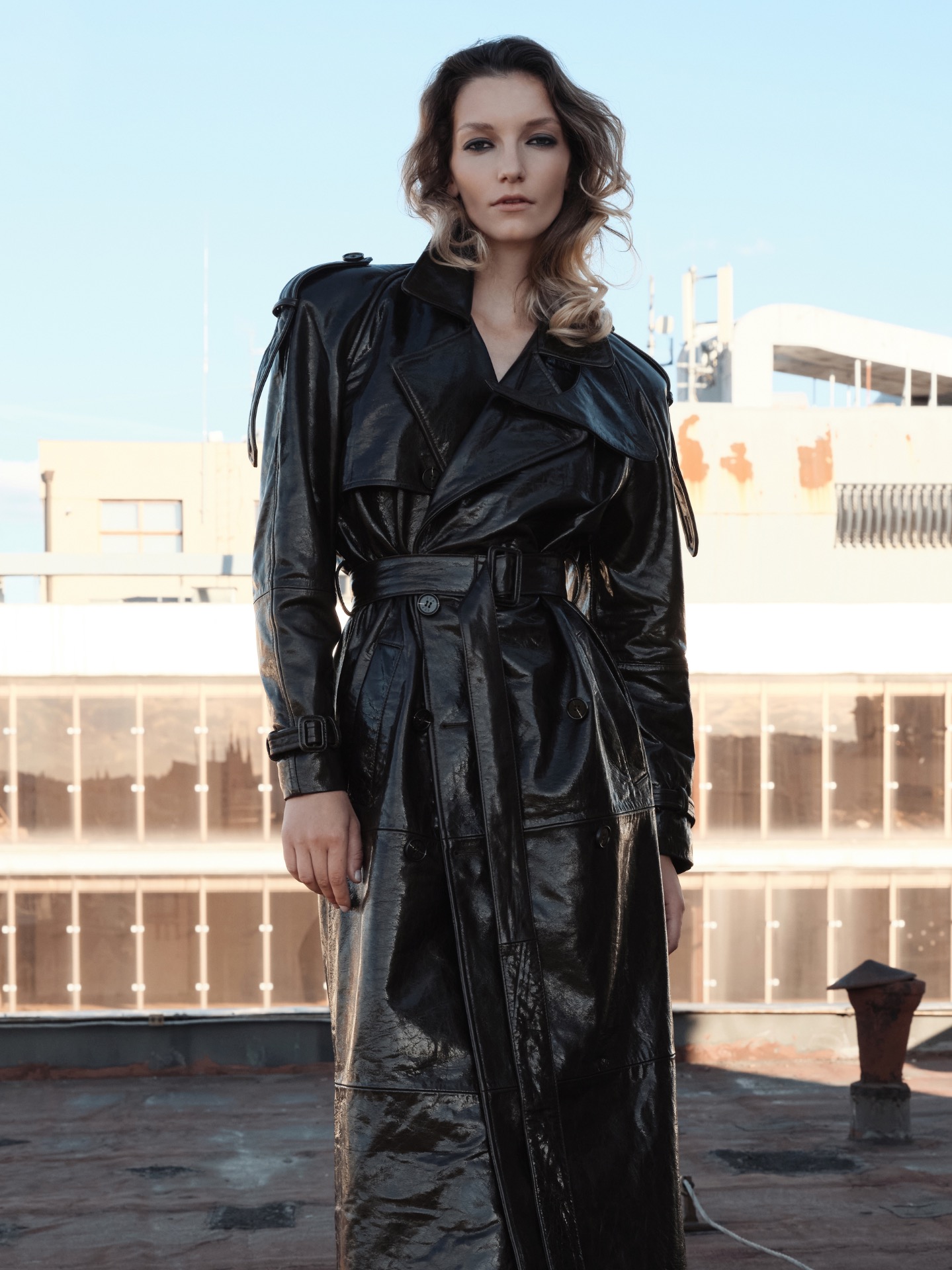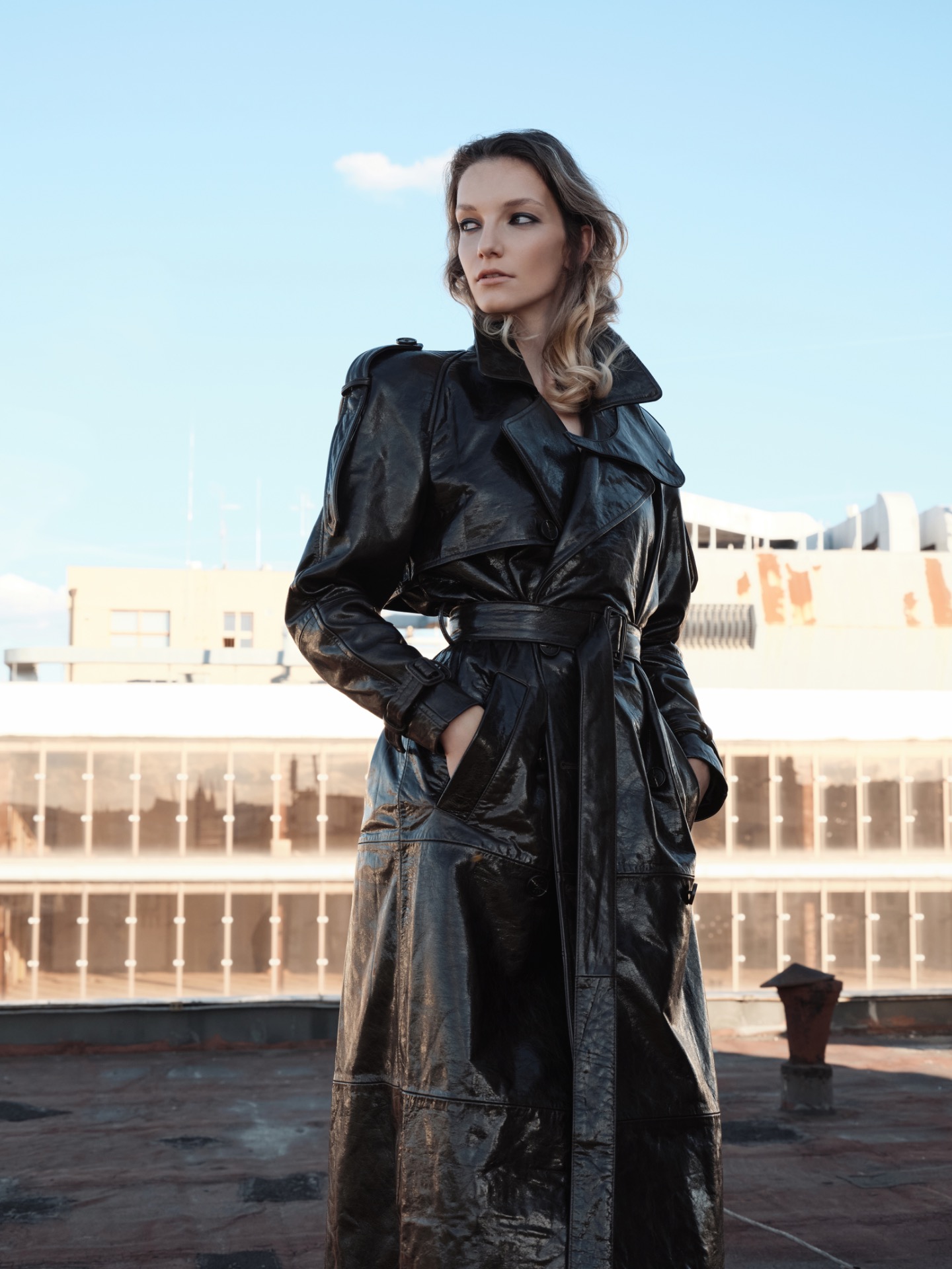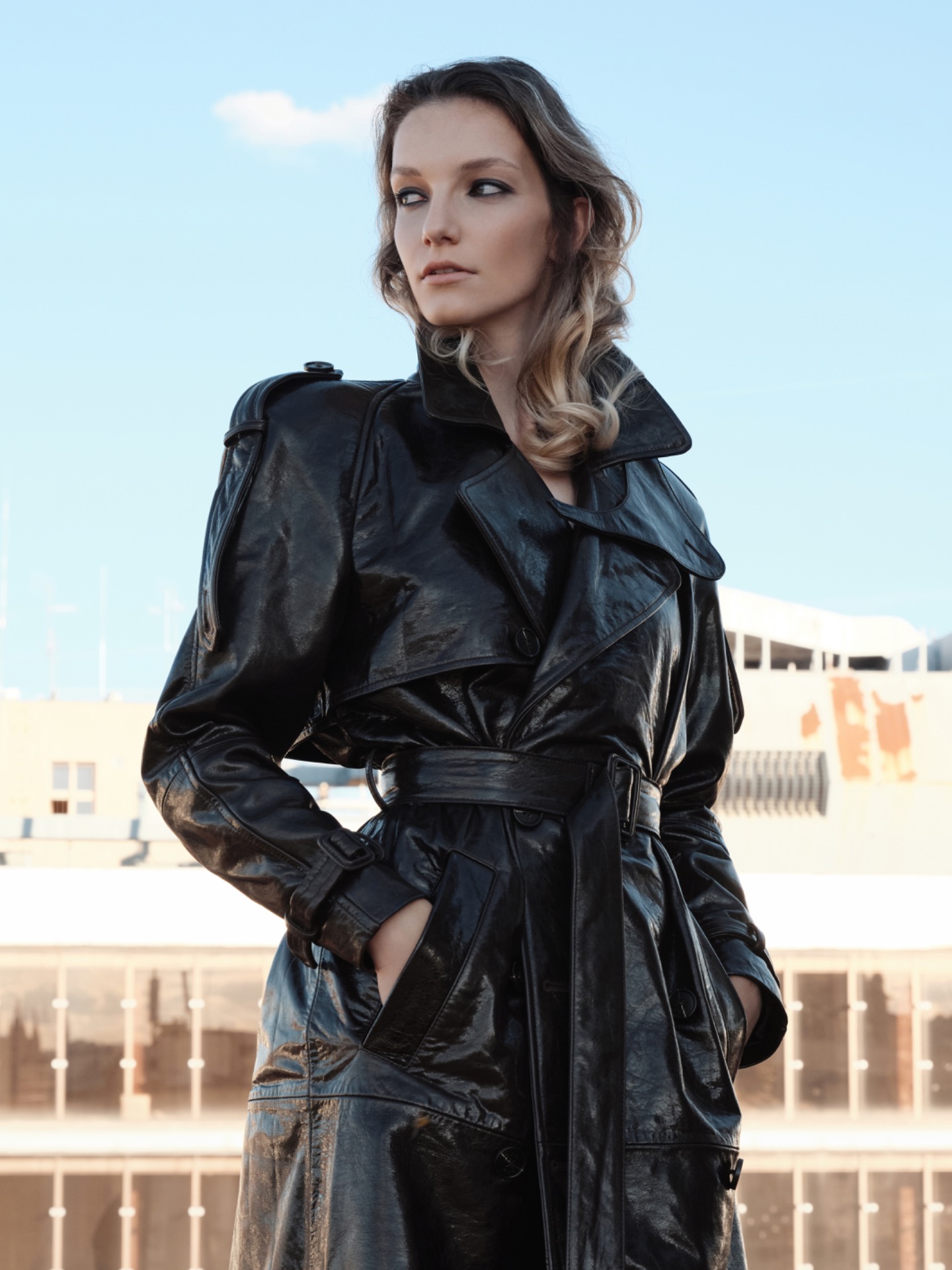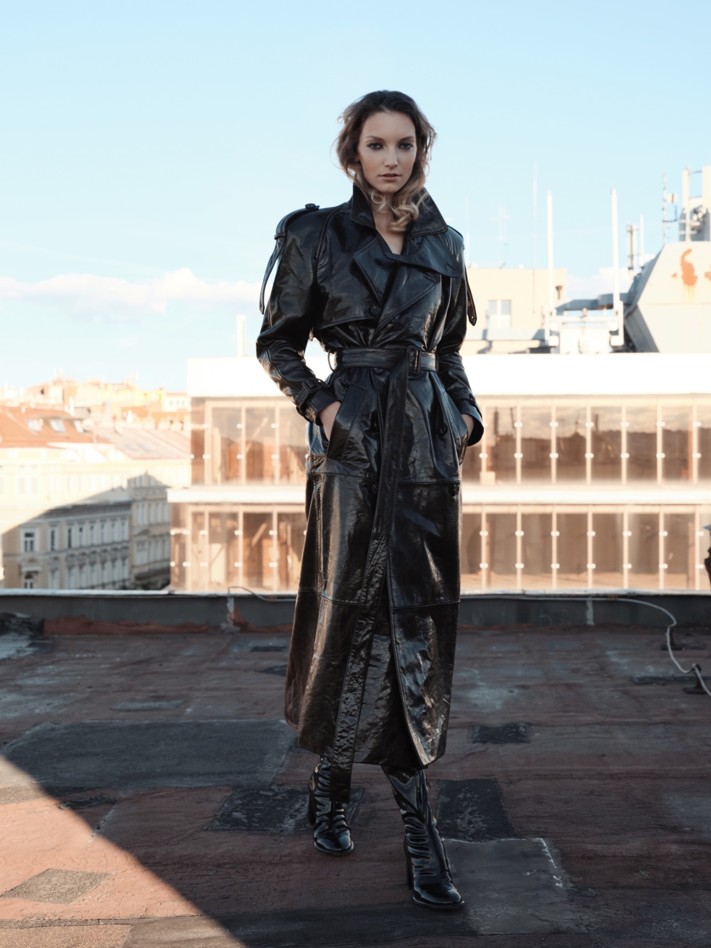 Kožený Trench Coat Veronica je ušitý z kvalitní olejované jehnetiny a byl navržen speciálně dle požadavků slovenské modelky Veroniky Vágnerové.